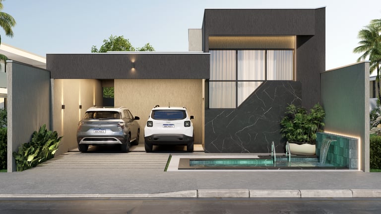 Renderizações realistas da fachada para você se inspirar ao construir sua casa.